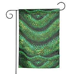 - Transform your outdoor living spaces with the WHJSHOP Emerald python pattern Prints Garden Flags for Yard Decoration, a premium choice for homeowners looking to add a touch of elegance and personality to their courtyards, gardens, or balconies. Crafted from 100% polyester fiber, these flags are not only thick and sturdy but also wear-resistant and wrinkle-resistant, ensuring they maintain their beauty and integrity through all seasons. The durable material is designed to resist fading, so your decorative flags stay vibrant and colorful, enhancing the aesthetic appeal of your outdoor areas for years to come. Ideal for a variety of settings, including flower pots, terraces, backyards, and lawns, these flags are versatile enough to complement any outdoor decor theme. The 3cm pole position width is perfectly sized for most standard flagpoles, though please note the flagpole is not included.