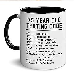 Funny 75th Birthday Mug 75 Year Old Texting Code – Gag Gifts for Men Women Seniors, 75th Birthday Gifts for Dad Mom Grandpa Grandma, Retirement Gift Joke 1950 Coffee Mug 11oz Ceramic White/Black