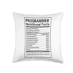Funny nutrition facts of programmers. Perfect for programmers, coders, and software developers who enjoy a humorous take on debugging, coding, and tech life. A fun way to show passion for technology and computer science. Great for anyone in the tech world, whether engineers, students, or IT professionals who appreciate clever designs that highlight coding humor and spark conversation. 100% spun-polyester fabric Double-sided print Filled with 100% polyester and sewn closed Individually cut and sewn by hand Spot clean/dry clean only