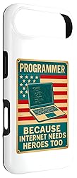 Programmer, because Internet needs heroes too. Perfect for programmers, coders, and software developers who enjoy a humorous take on debugging, coding, and tech life. A fun way to show passion for technology and computer science. Great for anyone in the tech world, whether engineers, students, or IT professionals who appreciate clever designs that highlight coding humor and spark conversation. Two-part protective case made from a premium scratch-resistant polycarbonate shell and shock absorbent TPU liner protects against drops Printed in the USA Easy installation