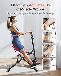VEVOR Squat Machine, Deep Squat Rowing Machine for Home, Easy Setup & Foldable Exercise Equipment, Glute Trainer Machine with 12-Gear Adjustable Resistance, Glutes & Leg Home Workout Machine