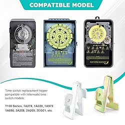 【EASY CONFIGURATION】Only requires 1 silver ON tripper and 1 gold OFF tripper; Just take out the screw of the pool timer tripper, then place the pool pump timer tripper in the desired position on the dial of time switch, and finally screw it on; 【TIME SWITCH REPLACEMENT TRIPPER】Compatible with Intermatic time clocks models: T101, T102, T103, T104 AND 102-20 AND 104-20, T104M, T104R, T101M, T101R; Compatible with 156T1978A 【COMPATIBLE MODEL】 Time switch replacement tripper compatible with Intermatic time switch models: T100 Series, 1A219, 1A220, 1A573, 1A850, 2A208, 2A209, 2EO21, etc. 【PACKAGE INCLUDED】You will get 4pcs gold OFF switches, 4pcs silver ON switches and 8pcs screws; By using the replacement trippers kit, you can precisely adjust the timer's on and off times. 【EASY TO INSTALL】Please loosen the fixing screw on the trip unit, slide the trip unit to the timer dial for on/off action at the required time, and then tighten the fixing screws; Please make sure that the correct time is under the current time pointer