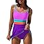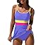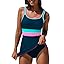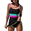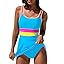 popvil Women One Piece Swimdress Swimsuit Neon Tummy Control Bathing Suit Swim Dress with Shell Trim U Neck Swimwear