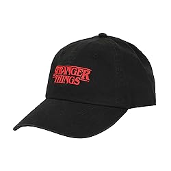 - Step into the Upside Down with this black Stranger Things unstructured baseball cap. Featuring embroidered red text of the series logo on the front, this hat delivers an iconic Stranger Things touch to your everyday style. Made with soft cotton, it provides a lightweight comfort for everyday wear whilet he metal adjustable closure ensures a secure fit. For simple care, hand wash it in cold water and lay it flat to dry.