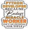 - [TRENDY PYTHON DEVELOPER DESIGN]: Features a bold “Python Developer Because Badass Miracle Worker Isn't an Official Job Title” slogan, adding a fun, professional touch for coworkers, students, or industry pros to personalize their gear.