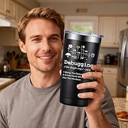 Gift for Computer Programmers: This tumbler features programming elements like HTML, CSS, and PHP, humorously interpreting the concept of "debugging." It's the ideal present for software developers, programmers, web designers, and all tech lovers. It resonates with everyday work scenarios while adding a touch of fun. Versatile Gifting Occasions: Whether celebrating birthdays, work anniversaries, project milestones, or expressing gratitude to programmer friends and colleagues, this tumbler is an excellent choice. Suitable for both personal gifts and workplace presents. Versatile All-Day Companion: Perfectly designed for both hot and cold beverages, keeping your morning coffee warm and afternoon iced drinks refreshing. The innovative double-wall insulation ensures optimal temperature retention for every sip Premium Material & Double Wall Vacuum Insulated: Made only from the highest quality premium 304 18/8 food-grade stainless steel, highly resistant to rust and break, and easy to clean by hand. those funny travel tumblers are finished with high-quality printing. This tumbler is unbreakable and built to last Great For Many Occasions: Our Tumbler is suitable for any indoor or outdoor places. Perfect for enjoying drinks at home, on the beach, by the lake, at the pool, cabin trips, camping, hiking, in the office, at the party, picnic, BBQ