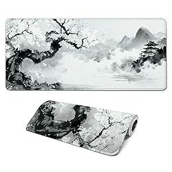 Gaming Mouse Pad with Anti-Slip Rubber Base, Extended Large Computer Mouse Mat with Stitched Edges, Long XL Anime Mousepad for Laptop and Keyboard, 31.5 x 11.8 inch (Japanese Cherry Blossom)