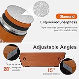 - Experience professional knife care at home with the LaPeak Rolling Knife Sharpener Kit — a next-generation manual knife sharpener designed for chefs, home cooks, and outdoor enthusiasts. This rolling knife sharpener combines precision engineering, diamond sharpening discs, and ceramic polishing discs to deliver razor-sharp performance across all types of kitchen and chef knives. The LaPeak magnetic knife sharpener maintains a constant 15° or 20° sharpening angle, ensuring every knife edge is uniform and factory-sharp. Simply attach your knife to the magnetic wood base, roll the diamond disc to reshape dull edges, then switch to the ceramic disc for a polished, smooth finish. Ideal for kitchen knives, outdoor knives, pocket knives, and chef’s knives, this tool works perfectly for blades of any hardness—from high-carbon steel to Damascus steel. Crafted with premium natural wood and strong N42 neodymium magnets, the LaPeak sharpener adds elegance and functionality to your kitchen setup. Its ergonomic rolling design makes it easy to use, even for beginners. No electricity, no complicated setup—just precise, repeatable sharpening results every time. This knife sharpening kit is not only a high-performance kitchen tool but also a thoughtful gift for men and women who love cooking, grilling, or camping. Packaged in a beautiful gift box, it’s a perfect chef gift idea for birthdays, holidays, or anniversaries. Upgrade your kitchen sharpening tools and restore your blades to peak condition with LaPeak’s Rolling Knife Sharpener — the ideal blend of diamond power, ceramic finesse, and magnetic precision for the modern chef.