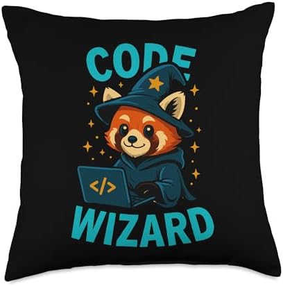 Funny Code Wizard Red Panda Programmer Design Throw Pillow