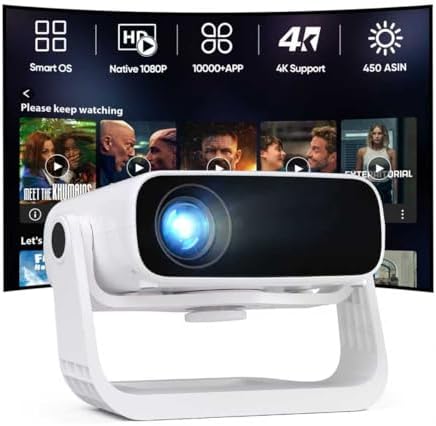 Smart Projector with WiFi and Bluetooth Built-in 10000+ Apps - 450 ANSI 4K Support Mini Movie Projector Native 1080P with 120° Rotation, Auto Keystone & Zoom 2025 New Portable Bedroom Proyector