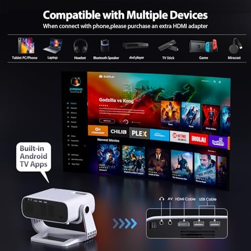 - Smart Projector Android Ecosystem:Enjoy quick access to content Prime Video, and YouTube, offering over 1,000,000 FHD videos with a single click! Allowing direct app downloads, smooth streaming, and transforming any space into a cinematic haven. Offering access to millions of videos without using an extra TV stick. From weekend binges to live sports, fitness apps, or kids’ cartoons—it adapts to your life, and curl up with theater-quality visuals without leaving your bed. Ideal for bedroom projector or outdoor projector users seeking convenience and versatility.