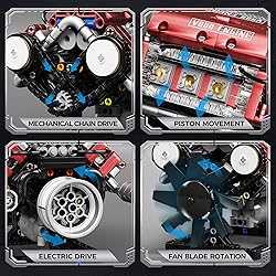 🧩 【Realistic Mini V8 Motion】:Bring mechanical power to life with this motorized v8 engine building blocks sets. This realistic setup integrates the structure of a v8 engine model kit, using a functioning crankshaft and classic V layout to show how a mini engine operates in motion. A great engine model kit experience for beginners and enthusiasts alike. ⚙ 【Motorized Pistons & Fan】:Connect the motor and watch your mini v8 engine kits that runs come alive: pistons pump, the crankshaft rotates, and the fan spins smoothly. Clear housing lets you observe every detail of this dynamic model engine kit, making it a highly interactive engine building kit for hands-on learning. 🔄 【Simulated Cooling System】:From belt-driven fan motion to pulley components, this engine model kit realistically simulates drive systems. Added detailing mimics ignition lines and wiring, creating a visually striking v8 engine model kit that enhances any mechanical display or engine building kit collection. 🛠 【Durable ABS Construction】:Built from high-quality ABS with precision-molded components, this V8 engine building blocks sets offers stable construction and long-lasting durability. Smooth, reinforced parts fit securely, making it ideal as a model engine kit for repeated demonstrations or as a reliable engine building kit for classrooms. 🎁 【STEM-Friendly Gift Choice】:Perfect for anyone curious about mechanics, this engine building kit encourages problem-solving, assembly skills, and engineering exploration. Whether as a holiday gift or birthday surprise, this engaging mini engine project or v8 engine model kit brings creativity and STEM learning together.
