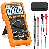 - Overview: This digital multifunctional multimeter with high precision and high performance can measure AC/DC voltage, current, resistance, capacitance, frequency, duty ratio, temperature. It also can test NCV(non-contact voltage),live test, diode, transistor and continuity. With a bracket on the back, convenient to place it on the table and read the values. It is widely reserved in schools, laboratories, factories and any other machining industry.Not only suitable for home users, beginners, maintenance enthusiasts, but also for professional electricians and technicians.Specifications: Main material: ABS DC Voltage Range and Accuracy: 600mV/6V/60V//600V/1000V ±(0.5%+5) AC Voltage Range and Accuracy: 600mV/6V/60V/600V/750V ±(0.8%+10) DC Current Range and Accuracy: 60mA/600mA/20A ±(1.0%+5) AC Current Range and Accuracy: 60mA/600mA/20A ±(1.5%+10) Resistance Range and Accuracy: 600/6K/60K/600K/6M/60M Ω ±(0.8%+2) Frequency Range and Accuracy: 10Hz/100Hz/1kHz/10kHz/100kHz/1MHz/10MHz ±(1.5%+5) Capacitance Range and Accuracy: 60nF/600nF/6uF/60uF/600uF/6mF/60mF ±(2.5%+5) Temperature Range: -20~1000℃/-4~1832℉ ±(1.0%+5) Duty Cycle: 1%~99% Display: 6000 counts Auto/Manual Range: √ True RMS: √ NCV: √ Live: √ Data Hold: √ Backlight: √ FlashLight: √ Diode Test: √ Continuity: √ Over Load Protection:√ Low Battery Indication: √ Auto Power Off: √ Short-Circuit Protection: √ Battery: 2 * AA batteries (included) Item Size: 19.0 x 9.2 x 5.0cm/7.48 x 3.62 x 1.97in Item Weight: 306/10.79oz 0.67lb(battery includes) Package Size: 215 x 132 x 54mm/8.46 x 5.28 x 2.36in Package Weight: 540g /1.19lb(battery includes)Package List: 1 * 6000 Counts Multimeter 1 * Pair of Test Probe 1 * Temperature Probe 1 * Cloth Bag 1 * Alligator Clip 1 * Screwdriver 2 * 1.5V AA Battery(include) 1 * User Manual"