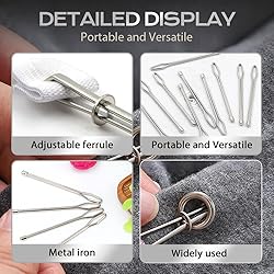 【Versatile Design for Daily Needs】Easily and quickly grips the elastic ribbon, drawstrings, and cording! A convenient easy threader tool to help you solve various troubles in life, it is your effective helper in your daily sewing work.They are 2 different styles designed for different threading situations to meet your daily needs. 【Durable Material】Our elastic threader tool is made of metal material with excellent bending resistance and wear resistance, which is not easy to bend and is wear-resistant. It is light in weight, small in size, and does not take up space that can be carried with you in your pocket or backpack. It is an essential tool for daily home use. 【Easy to Use】This easy threader tool features a simple operation mechanism. By moving the ring to loosen the clip part, clamping one end of the rope, and then tightening the clip again, you can effortlessly wear ropes or elastic bands. Its straightforward usage makes it accessible for everyone. 【Save Time & Energy】The flexible rope threader is designed to save you a significant amount of time and effort. Its efficient mechanism provides convenience and practicality without damaging your clothes, making it an ideal tool for quick fixes and adjustments. 【Wide Application】Sewing loop turner hook with latch suitable for changing or adding drawstrings, such as sports pants, yoga clothes, hoodies, jackets, sweatshirts, etc. It is also a practical tool for DIY sewing craft lovers.