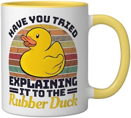 Programming Rubber Duck Software Developer Debugging Ceramic Mug, Yellow/White