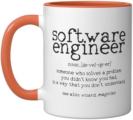 Software Engineer Definition Funny Programmer Coder Gift Ceramic Mug, Orange/White
