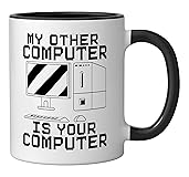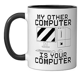 My Other Computer Is Your Computer - This is for computer hackers looking for hacker stuff to wear while phishing. A gifts for a professional game hacker who can bypass any cybersecurity. Ideal for hacker outfit to show your hacking knowledge. This hacking graphic is for programmers and pen testers doing some penetration test to prevent password attacks. A present for proud hackers who are experts in cybersecurity hacking. Impress everyone at the next hackathon wearing this hacker apparel. 11-ounce ceramic mug is dishwasher and microwave-safe, lead and BPA free Features glossy finish with accent colors on interior, handle, and rim of two-tone designs