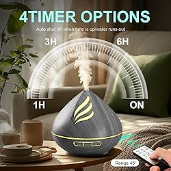 [Large Capacity]: This essential oil diffuser is a multi-functional flying wing design aromatherapy device With real capacity of 500ml, it provides 15-hour runtime – 2x longer than other diffusers, covering 40m² rooms with aromatic essential oil fragrance, Auto shut-off without water ensure 24/7 safety for families with kids [14-Color LED Lights]: Our diffuser offer 14 light modes with 7 ambient colors (cool/warm) and automatic color cycling. Can use it as a nightlight, decorative light, mood adjustment light. The light color can be customized according to your mood and interior decor style to heal your life with different colors every day. [4 time setting]: The diffuser offers 4 timing modes that can be set to run for 1/3/6H timer functions, the humidifier settings effortlessly adjustable via the remote control to fulfill different home space environments for the living room, study room, and bedroom, creating a personalized aromatherapy experience for you [2 Mist model]: Our diffuser can provide stable cool mist, Switch between Gentle Mist (30ml/h) and Intense Mist (60ml/h) to regulate humidity in different scenarios, Ultra-quiet <23dB noise level—quieter than breathing, combined with eco-friendly and fresh fragrances to bring you a cozy and quiet environment. [Best gift for home]: Our diffusers are constructed with baby-safe-grade PP material to ensure maximum safety for home use. Combining healthy and refreshing essential oil diffuser with an aesthetic design, they make thoughtful Christmas gifts for family and friends.