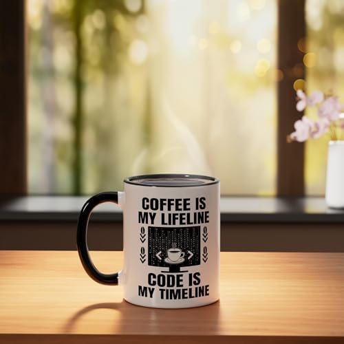 Coffee Coding Programmer Coder Developer Nerd Coffee Lover Ceramic Mug, Black/White