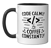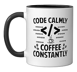 Dive into the world of coding with a cup of your favorite brew. Celebrate the coder's love affair with coffee, a match made in coding heaven. Whether you're a coding enthusiast, developer, or simply a coffee lover, our designs embody the union of code and caffeine. It's a sip of inspiration for your coding journey. 11-ounce ceramic mug is dishwasher and microwave-safe, lead and BPA free Features glossy finish with accent colors on interior, handle, and rim of two-tone designs