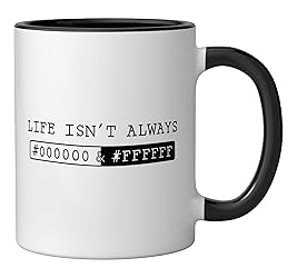 Cool design on the subject of programming. Suitable as a present for Christmas or B-Day. Also perfect as sleeping top. Nice grafic for Computer Fans and Internet Nerds with the title: Black and white in Programming Code. The language of computers consists of 1 and 0, not everyone can tell the PC what to do. It is not easy to program the so called software, for that you have to be almost a nerd. Games or software have programmed databases. 11-ounce ceramic mug is dishwasher and microwave-safe, lead and BPA free Features glossy finish with accent colors on interior, handle, and rim of two-tone designs