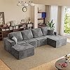 Homall 126" Modern Fabric Boneless Couch with Deep Seat, Sectional Couches for Living Room, Upholstered Cloud Sofa with 2 Ottoman, No Assembly Required (Dark Grey, U Shaped Sofa)
