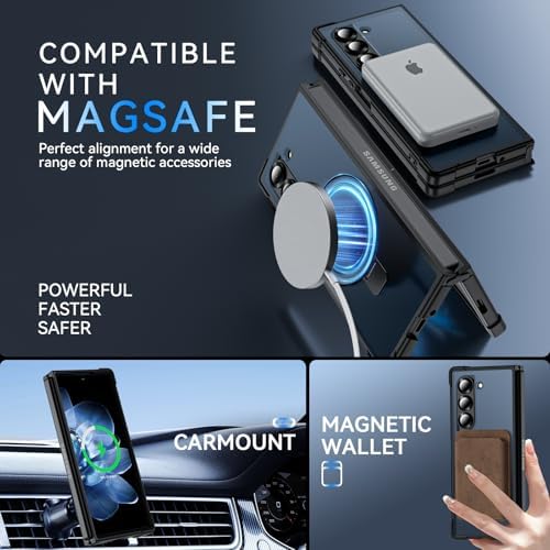 Hensinple for Samsung Galaxy Z Fold 6 Case with Ring Stand, [Compatible with MagSafe][Slim Fit], Magnetic Charing Translucent Back Shockproof Phone Case for Z Fold 6, Black