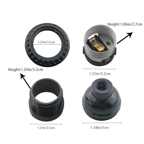 Product packaging: 2pcs E26 bulb socket bracket Product material: bakelite + core Product color: Black Product features: 1.The lamp socket can be tightly fastened on the metal lampshade. When unscrewing to install the light bulb, the socket will not rotate inside the cup. 2.Hold it well. Suitable for hanging lamp fixture fixing the lampshade. It secures the light on the fixture. It's best to remove the inner angle bracket to insert the wire into the bracket. 3.Used to convert tea lamps into electric bulbs. Repair bathroom dressing table lights. These sockets are very suitable for craft lighting projects and DIY home decoration. Note: 1.Due to manual measurement, please allow for length deviations. 2.Due to differences in display and lighting effects, the actual color may vary slightly from the image.