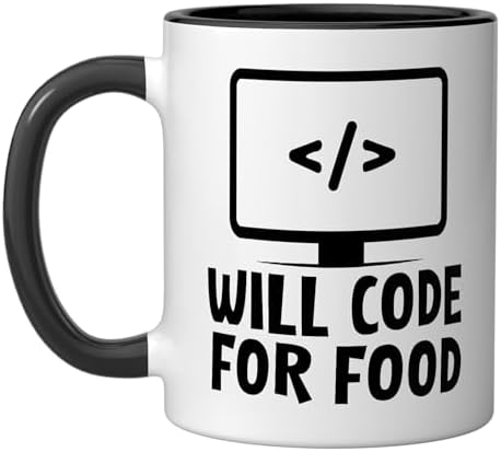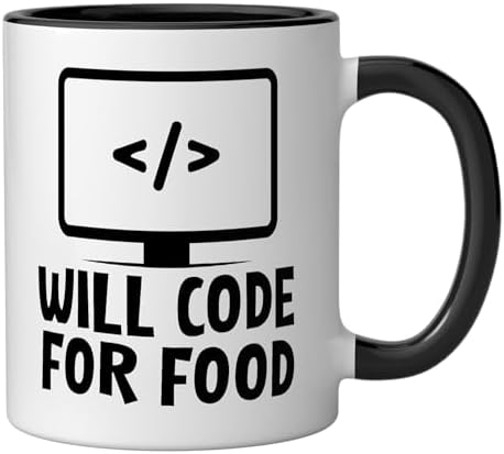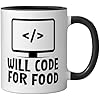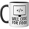 Will Code For Food Computer Programming Programmer Coding Ceramic Mug, Black/White