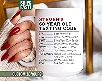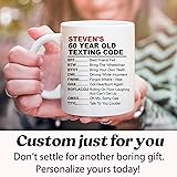 Funny 60 Year Old Texting Code Mug, Personalized Name Coffee Cup, Over The Hill Birthday Gift for Him or Her, 1965 Born Gag Gift, Senior Humor Cup, Turning 60 Joke Mug, Custom Funny Birthday Present