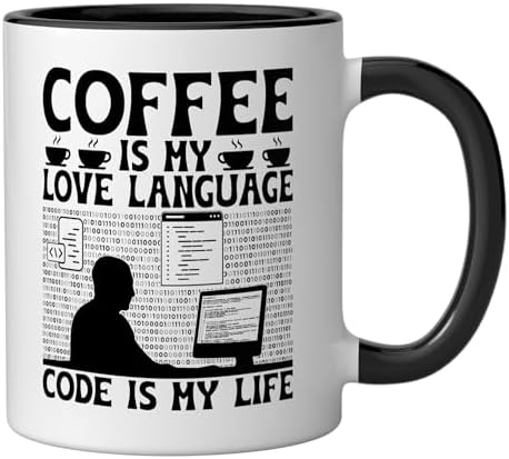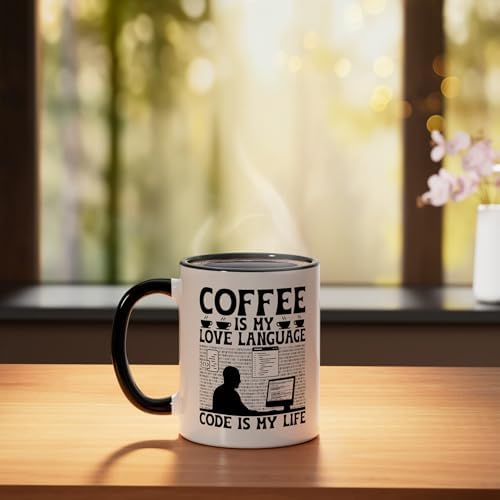 Coffee Coding Programmer Coder Developer Nerd Coffee Lover Ceramic Mug, Black/White