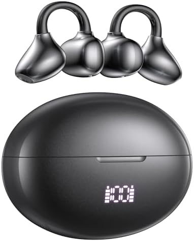 Clip On Earbuds, Open Ear Wireless Bluetooth 6.1 Headphones with Mic,80H Battery with LED Display, HiFi Sound IPX7 Waterproof, Comfortable for Small Ears&Glasses Wearers, Sports/Office/Music