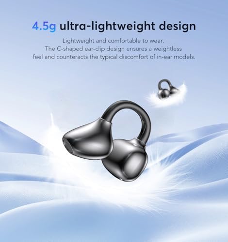 - Comfortable Wearing Design: The Q108 clip-on earbuds feature a newly upgraded C-shaped design for a secure fit that won't slip off. With an ergonomic design, they offer comfortable wear without putting pressure on the ears. Lightweight at just 4.5g, they allow you to fully enjoy music, calls, or podcasts.