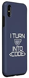 I Turn Coffee INTO Code Fun Web Developers Coding Meme Case for iPhone Xs Max
