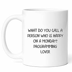 Happy Programming Lover Mug - Enthusiast Coffee Cup - Developer Funny Gift From Friends - Geek Tea Mugs - Cups - 11 Oz Ceramic Gifts For Programmers, Birthday, Him, Her, Christmas, Coding Session
