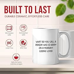 Happy Coding Lover Mug - Programmer Coffee Cup - Funny Gift From Colleagues - Developer Tea Mugs - Geek Cups - 11 Oz Ceramic Gifts For Computer Scientist, Birthday, Him, Her, Christmas, Hackathon