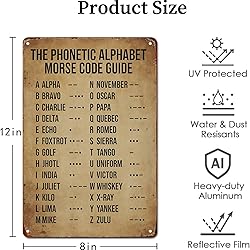 Vintage Morse Code Alphabet - Phonetic & International Guide Wall Decor Retro Metal Sign Poster for Garage Man Cave Bathroom Bedroom Farm Inspirational Popular Wall Art 8x12 Inch Signs Posters