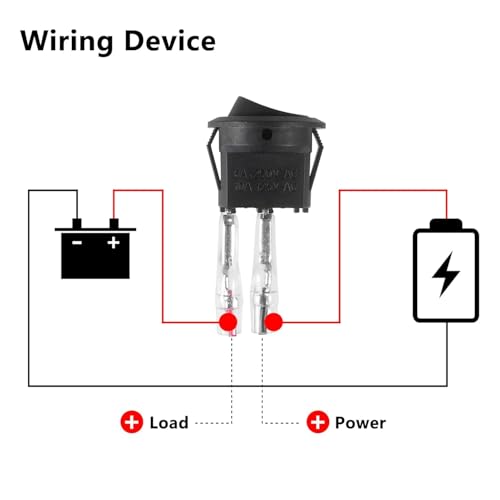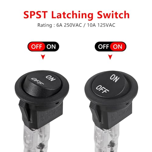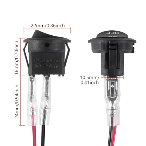 20PCS Round-Square Rocker Switch ON/Off Latching Toggle Switch SPST 2Pin with Pre-Wired 6A/250V 10A/125V AC for Car Automotive RV 2 Pin Switch