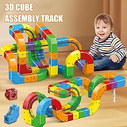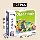 Modular 3D Fit design: Colorful cubes in this electric train set connect securely, allowing kids to build flexible tracks with vertical climbs, curves, bridges, and twists for endless construction fun. The set includes 2 electric trains, 68 building blocks, 53 accessories, a total of 123 pieces. Anti-Gravity Motorized Action: The motorized car performs 360° spins, sideways moves, and upside-down hangs, offering gravity-defying play that captivates kids. STEM Skill Development: Designing layouts with the Gravity-Defying Track Set enhances spatial awareness, problem-solving, and creative thinking in young learners. Child-Safe Durable Build: Made with smooth-edged, sturdy materials, the track parts lock tightly, ensuring safe, long-lasting play for kids. Engaging Early Learning Toy: This Motorized Car Track Set makes a great gift, blending fun and education for boys and girls exploring building and sensory play.