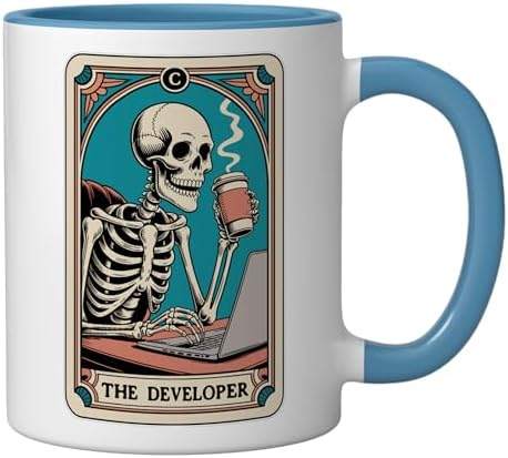 The Developer Tarot Card Programmer Software Engineer Coding Ceramic Mug, Blue/White