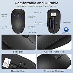 PLUG & PLAY, EASY TO USE: The wireless mouse for hp no need to install any software, easy to set up. Just take off the USB receiver in the battery slot, and simply plug the USB A mini receiver into your computer / laptop / PC and start working in seconds. The laptop mouse with 2.4 GHz wireless transmission technology provides a powerful and reliable connection up to 10 Meters / 33 Feet UNIVERSAL COMPATIBILITY: The mouse wireless computer mice widely compatible with desktop, laptop, PC. The mouse inalambrico para laptop support various systems including Windows XP, Windows 7, Windows 8, Windows 10, Windows 11, Linux, Mac OS. Suitable for home, office and travel. Note: This USB mouse is connected by USB receiver, will Not compatible with MacBook Pro or other devices which only have Type C ports. PORTABLE & POWER SAVING: The size of the mouse for chromebook is 4.01x2.36x1.46in, can be easily put into your laptop bag and ultra-space saving. Slim, lightweight and durable usb mouse wireless is perfect for travel. Automatic sleep mode and wake-up mode are installed to save energy. The wireless laptop mouse will turn to sleep mode in a few minutes of inactivity and can be easily activated by clicking any buttons. Please turn off the wireless mice when not in use to expand the using life ERGONOMIC COMFORT MOUSE: Designed with a contoured thumb rest and arched palm support, this wireless mouse for hp laptop prevents wrist strain during 8 hours workdays. The smooth matte finish resists fingerprints, while the textured grip zone ensures control during rapid movements WHAT YOU GET: 1x Cordless Mouse, 1x USB Receiver. Powered by one AA battery (not included). 7 X 24 Hours Friendly and Reliable Customer Service. 12 Month Hassle-Free Warranty. If you have any questions about this wireless mouse for Dell, please just feel free to contact us