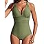 Hanna Nikole Womens One Piece Swimsuits, Tummy Control Deep V Neck Swimwear,Crisscross Back Tie Bathing Suit