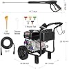 - 【Hassle-Free Operation】Ready to go with a 0.9-gallon fuel tank and built-in 1-gallon soap tank for detergents or chemicals. Just fill up with 87+ unleaded gasoline and SAE 10W-30 oil, and you’re set for hours of powerful, efficient cleaning.