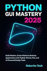 - Unlock the full potential of Python as a powerful GUI development platform — and master how to build elegant, intelligent, and production-ready desktop applications that feel as good as they look.In Python GUI Mastery 2025, veteran engineer Robertto Tech delivers the most complete and future-proof guide to building modern graphical user interfaces using Python’s leading frameworks — including Tkinter, PyQt6, Kivy, and Flet — while introducing AI-assisted workflows that redefine how developers design and deploy user experiences.Whether you’re a seasoned Python developer, a data scientist turning tools into polished apps, or an engineer exploring AI-integrated UX systems, this book will equip you with the architecture, code patterns, and real-world projects needed to command today’s most advanced GUI stacks. 💡 Inside You’ll Learn How To:Design cross-platform GUIs that look and feel native on Windows, macOS, and Linux.Master Tkinter and PyQt6 for professional-grade desktop applications.Build responsive interfaces using Flet and Kivy for web and mobile compatibility.Integrate AI tools and LLMs (like ChatGPT and LangChain) directly into your app interfaces.Apply UX/UI principles that transform your code into visually refined products.Package and deploy apps for any platform with PyInstaller, Briefcase, and Flet Cloud.Automate GUI generation with AI-powered design assistants and workflow agents.Secure, optimize, and scale your applications for enterprise-grade reliability. 🚀 Includes:8 structured, project-driven chaptersFull, runnable Python code with line numbersReal-world examples, from dashboards to AI assistantsDeployment and testing best practicesExpert commentary from a senior engineer’s perspective ⚙️ Who This Book Is ForPython developers building GUI apps for clients or enterprise useML engineers and data scientists who want interactive visualization toolsEducators, tool creators, and automation enthusiasts integrating Python into UI workflowsAnyone ready to go beyond tutorials — and into complete, production-grade software designPython GUI Mastery 2025 isn’t just another framework tutorial — it’s your blueprint for crafting intelligent, future-ready desktop applications that bridge the gap between code, design, and AI.Bring your interfaces to life — one intelligent window at a time.