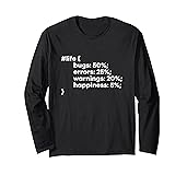 Programmer life is filled with bugs, errors and warnings. There is a little bit of happiness in it too because of the successful compilation, maybe. Cute programmer design for programmers who live the programmer's life. Lightweight, Classic fit, Double-needle sleeve and bottom hem