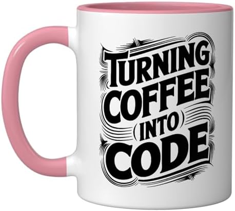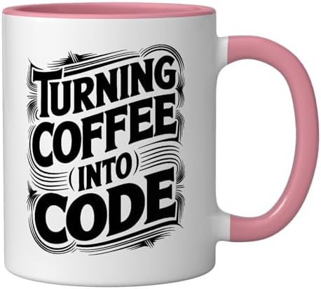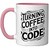Turning Coffee Into Code Funny Software Coding Programmer Ceramic Mug, Pink/White