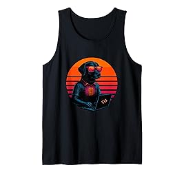 Retro Dog with Smartphone Coding Mobile App Developer Tank Top