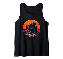 Retro Dog with Keyboard Coding Software Developer Tank Top