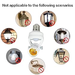 ☞Plug-and-Play Smart Upgrade - No wiring needed—screws directly into existing E26/E27 sockets, compatible with LED/CFL bulbs; infrared motion sensing within 6m, auto on/off. For open lampshades only (glass interferes with PIR sensor). ☞All-Weather Durable Design - IP65 waterproof & dustproof, resists rain, snow and dust—ideal for patios, driveways, basements. Supports 10s-5min timer & 5-100lux light sensitivity adjustment (SUN mode for daytime use, NIGHT mode for evening only). ☞Adjustable Detection Angle - 120° detection angle + 16-23ft range, fits stairs, corners and more; timer knob adjusts illumination duration (10s-5min) for flexible use. ☞Auto On/Off & Energy Saving - Automatically turns on in darkness and shuts off after adjustable delay, saving 40% energy vs manual switches; high-sensitivity infrared detection, auto day/night recognition—practical and energy-efficient. ☞Multi-Scene Safety Compatibility - Prevents falls on stairs, deters intruders, hands-free lighting; compatible with E26/E27 bulbs, suitable for garages, closets, corridors, hospitals, exhibition halls and other indoor/outdoor scenes.
