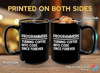 - Crafted with a sturdy handle and a durable, long-lasting print image, this mug is built to withstand the rigors of daily use. No need to worry about fading or peeling – this print is here to stay. Plus, it’s microwave and dishwasher friendly, making it super convenient for your busy lifestyle. And for those who love their packaging, this mug comes with a box, making it ready for gifting. Looking for gifts for software engineers or computer programmer gifts? This mug hits the mark. It's also a fantastic choice for computer coding accessories, computer nerd gifts, or a computer science mug. With its humorous and geeky vibe, it’s a standout among gifts for coders and cool gifts for computer geeks alike. If you're searching for gifts for computer scientists or a coding gift that will be appreciated, look no further. This mug isn’t just for programmers; it’s also a hit with cat lovers. Imagine sipping your morning coffee or tea while your feline friend keeps you company. It’s a small joy that makes a big difference in your day. And if you’re buying for someone else, this mug makes wonderful coder gifts, computer science gifts, and even gifts for computer science majors. Think of it as a versatile present that caters to a broad range of interests. For those who love accessorizing their workspace, this mug pairs well with laptop programmer stickers and other computer coding accessories. It's also an excellent addition to any collection of computer coding gifts or programming mugs. Whether you're looking for coding gifts for men or just a cool coding coffee mug for yourself, this mug delivers. So, if you’re on the hunt for a computer genius mug that’s both fun and functional, or you need a thoughtful gift for programmers, consider this Programmer Coffee Mug 15oz Black. It’s a unique blend of humor, quality, and practicality that’s sure to delight anyone who receives it.